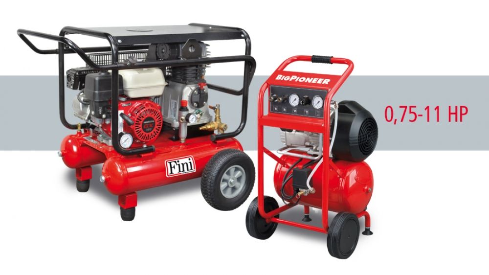 La gamma "PNEUMAIR" di compressori ad alta pressione è progettata con criteri costruttivi che li rendono ideali per settori come l'autoriparazione, i gommisti e le piccole-medie industrie che richiedono pressioni di lavoro fino a 14 bar. Questi compressori sono disponibili in versioni fisse o carrellate, con serbatoi da 100 a 500 litri, potenze da 5,5 a 10 HP e opzione di motore a scoppio HONDA®.